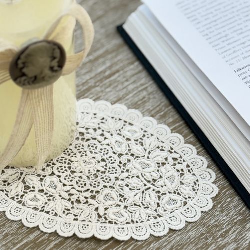 - 누벨르 투톤 레이스 도일리 프렌치 테이블매트 원형 깔개 받침 패드