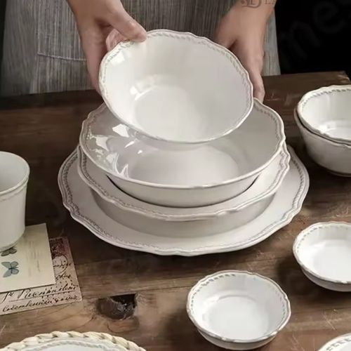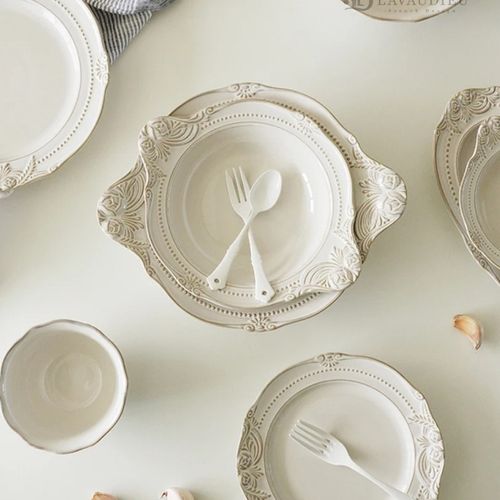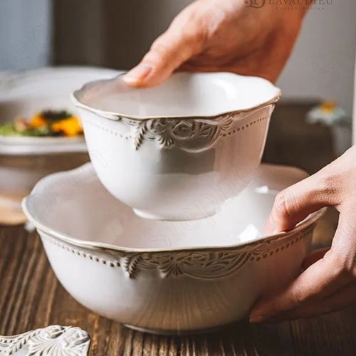 - 밥그릇, 국그릇 2종 프렌치식기 빈티지 화이트 앤틱 라인 시리즈