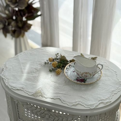 - 벨리나 로즈 레이스 자수 테이블 레이스 매트 인테리어소품 테이블데코 프렌치인테리어