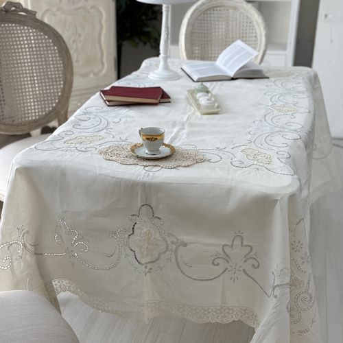 - 라보디유마르세유 앤틱 레이스 테이블보 170cm 앤틱 자수 테이블보 자수 레이스 식탁보