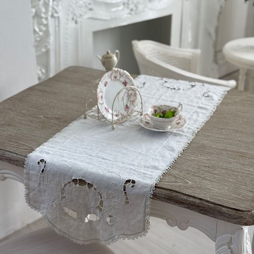 - 블랑 컷워크 자수 테이블 러너 104cm x 37cm 전시오염상품