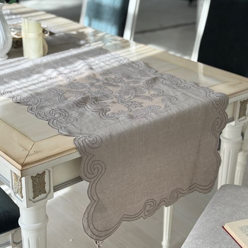- 모던 모카베이지 자수 테이블 롱 러너 60cm x 230cm