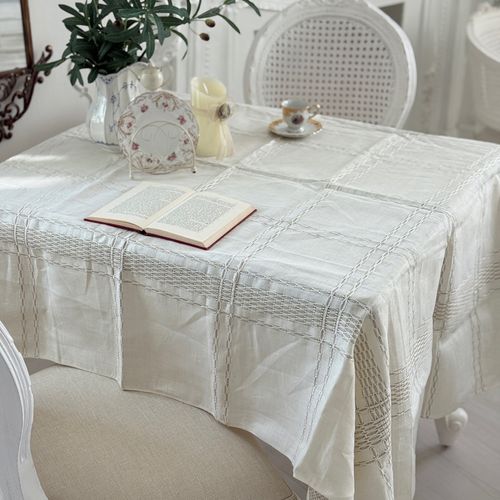 - 로브 린넨 프렌치 체크 식탁보 130cm x 180cm