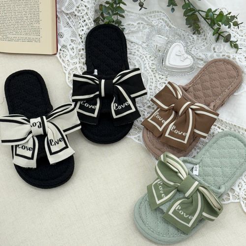 - 러브 보우 퀄팅3중쿠션 리본실내화 4종 4colors 층간소음방지 거실화