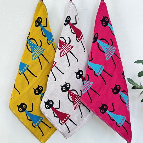 - 고리수건 면 자수 프렌치 욕실 핸드타월 3종세트 (고양이)