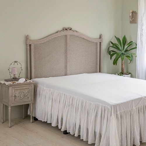 - 프렌치 쉐비 샌드 그레이 라탄 침대 헤드보드 원목 빈티지 호텔 감성 헤드만 있는 침대