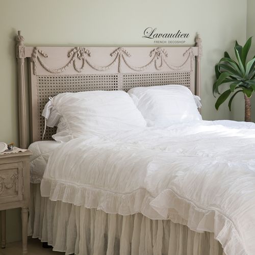 - 빈티지 쉐비 라탄 침대 헤드보드 킹사이즈 로맨틱 가랜드