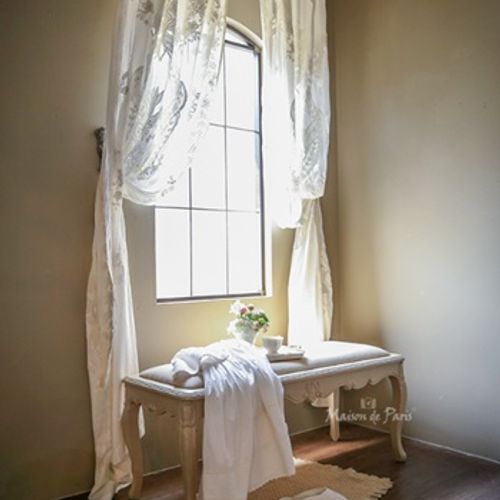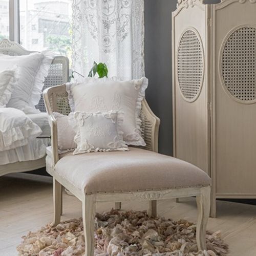 - 프렌치 원목 스툴 메뉘지에 린 패브릭 보조의자 거실 화장대 침실 파우더룸
