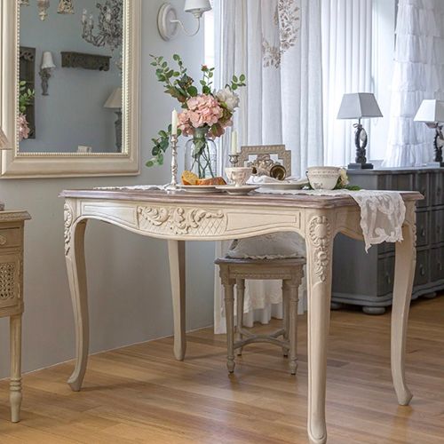- 프렌치 빈티지 4인 로즈 앤틱 조각 원목 다이닝 테이블 고급 수입가구