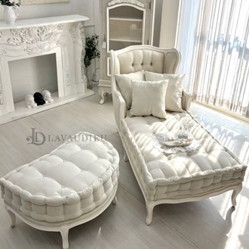 - 프랜치 딥크림 패브릭 엠보 스툴 소파 침실 서재 파우더룸 프렌치 스타일