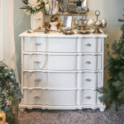 - 프렌치 쉐비 엔틱 4단 서랍장 화이트 원목 수납장 거실 인테리어 침실 화장대 콘솔 장식장