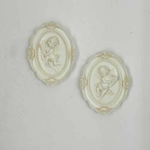 뮤직 앤젤 오벌 플라크 2P 벽걸이장식 엔틱 인테리어 엔젤소품 천사벽걸이 타원장식 오벌소품