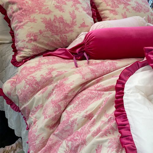 - 차렵이불 세트 침구 프렌치 뜨왈 벨벳 이불(벨벳 프릴 베딩세트/핫핑크)