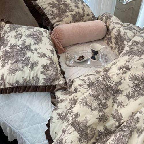 - 차렵이불 세트 침구 프렌치 뜨왈 벨벳 이불(벨벳 프릴 베딩세트/브라운)