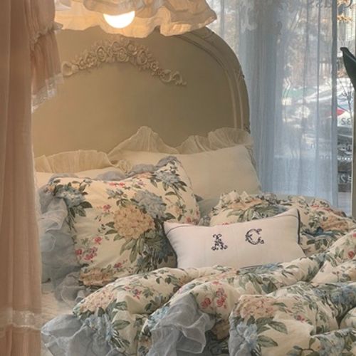 - 프렌치 플로럴 린넨 프릴 사계절 침구세트 침실 로맨틱 인테리어