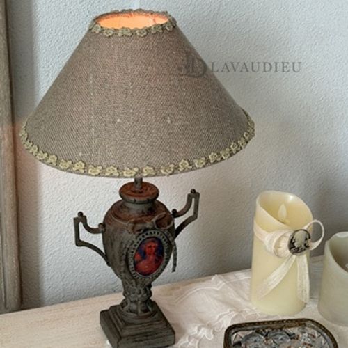- 유럽 앤틱스탠드 갓 교체용 빈티지 린넨 패브릭 쉐이드 레이디가드너