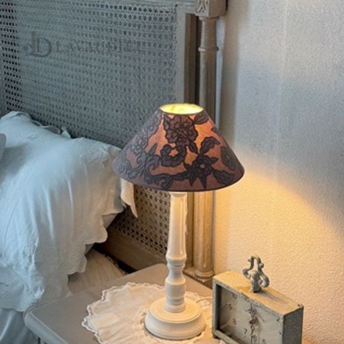 - 꼬끄시그루 프렌치 쉐비 침실 조명 쉐이드 플라워 린 콜롬보 테이블램프 파스텔 (엔틱화이트)