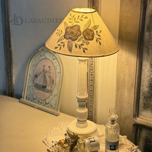 - 꼬꼬시그루 쉐이드 린넨 자수 프렌치 인테리어 소품 (C플라워 솔리드램프)