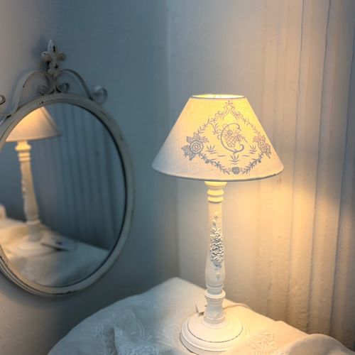- 프렌치 쉐비 침실 조명 쉐이드 린 화이트 테이블램프 파스텔 (엔틱화이트)