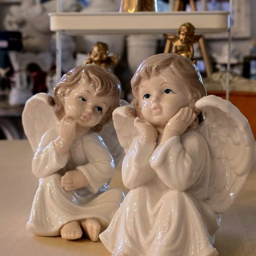 - 턱괴고 있는 천사 2set 피겨인 야드로 오브제 피겨린 고급 세라믹 인테리어 도자기 장식 인형