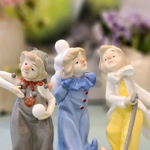 - 컬러 피에로 3종 세트 도자기/세라믹 인테리어 장식 오브제 피겨린 고급 세라믹 인테리어 도자기 장식 인형