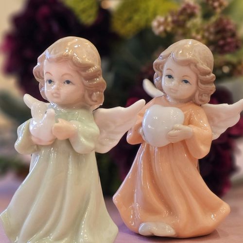 - 골드링 천사 세트 피겨린 2종 도자기/세라믹 인테리어 장식 오브제 피겨린 고급 세라믹 인테리어 도자기 장식 인형