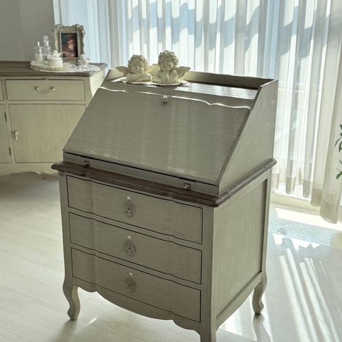 - 엔틱 원목 뷰로 데스크 프렌치 수납 가구 화장대 쉐비가구 수납장