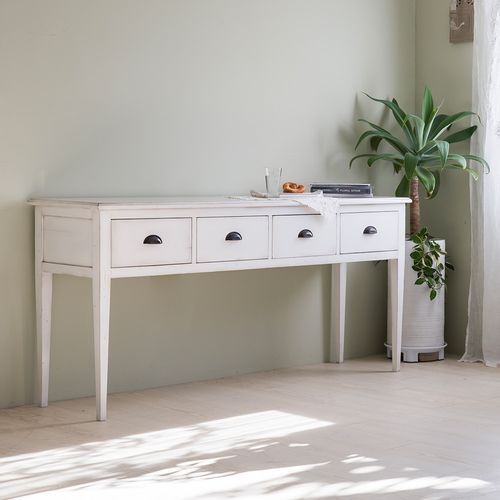 - 프렌치 화이트 원목 4서랍 콘솔테이블 슬림 현관테이블 거실 복도 화장대 인테리어 가구