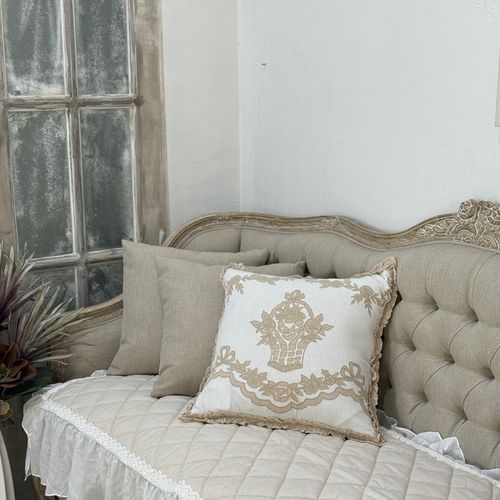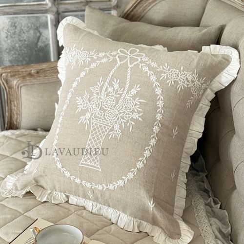 - 프렌치 앤틱 네추럴 자수쿠션 플라워바스켓 쿠션커버