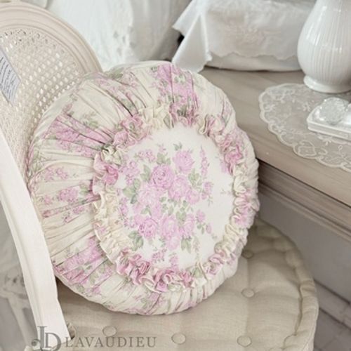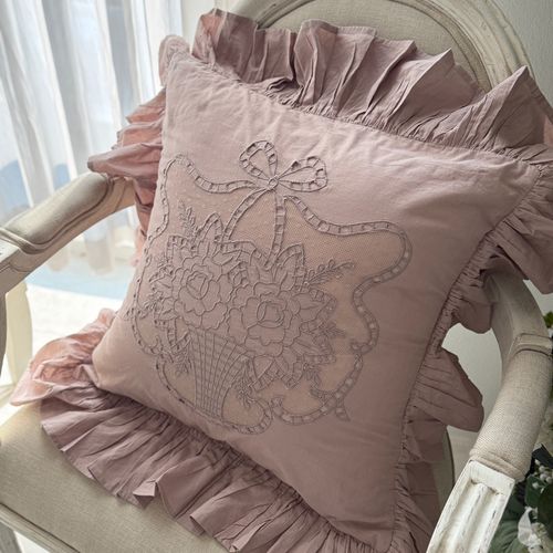 - 프렌치 인디핑크 자수 쿠션 수입 엔틱 거실 소파 등받이 프릴 포인트 침실 소품