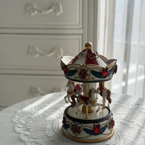 - 로맨틱 카루젤 앤틱 오르골 높이 20cm x 지름 11.5cm