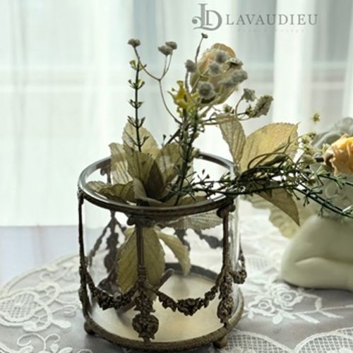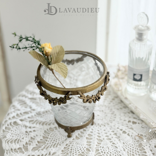 - 프렌치 엔틱 유리 화병 브론즈 프레임 장식 소품