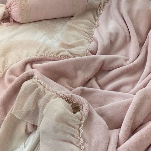 - 헤라 밍크 핑크 블랭킷이불 프릴블랭큿 프렌치침구