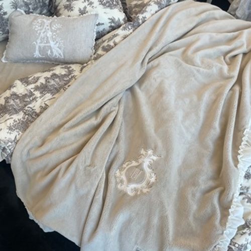- 스프레드 국내제작 면 침구 프렌치 자수 밍크 이불(이니셜 자수 밍크)