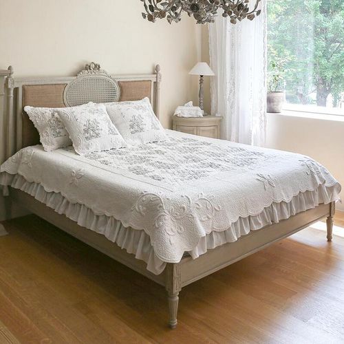 - 라보디유 린넨 롱프릴 화이트&화이트스프레드 패드 겸 프렌치침구 레이스 침구