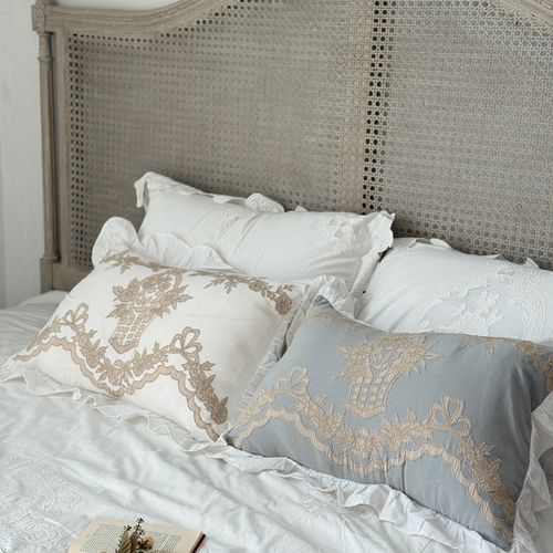 - 클래식 꽃바구니 자수 베개 커버 유럽 감성 수입 빈티지 프릴 침실 꾸미기 소품