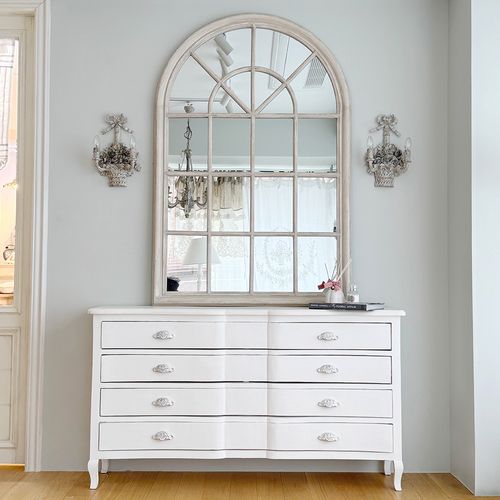 - 프렌치 화이트 앤틱 4단 와이드 서랍장 침실용 화장대겸 수납장