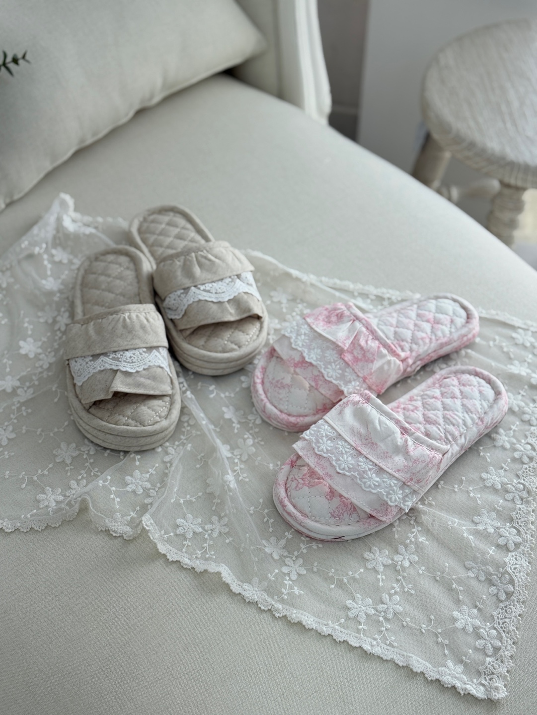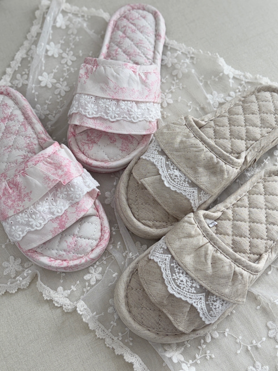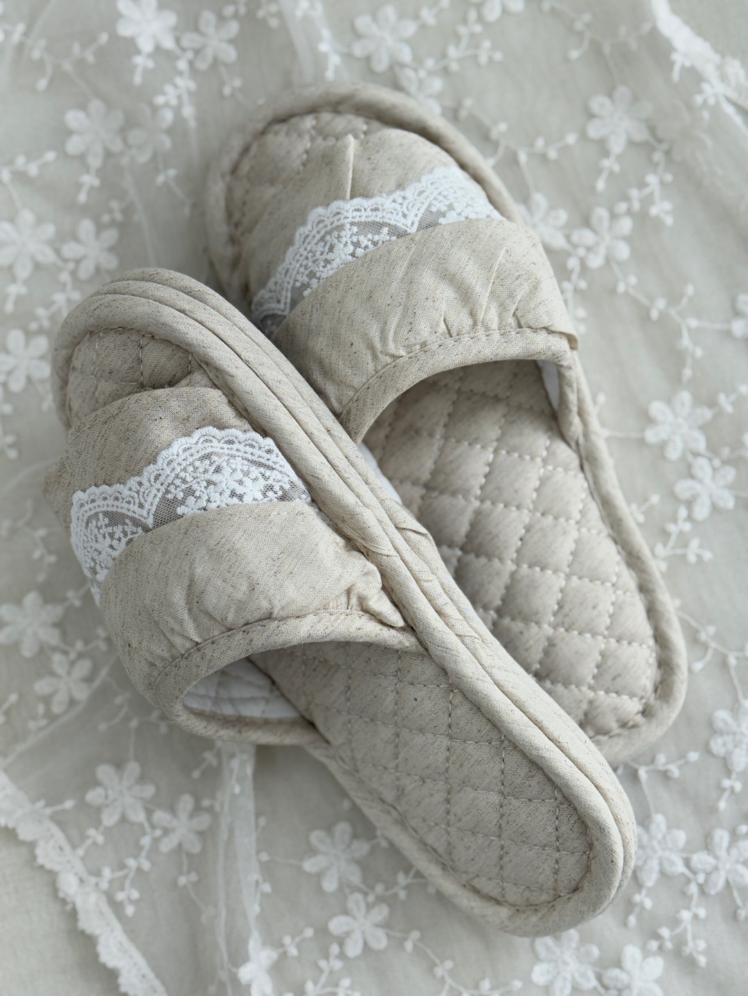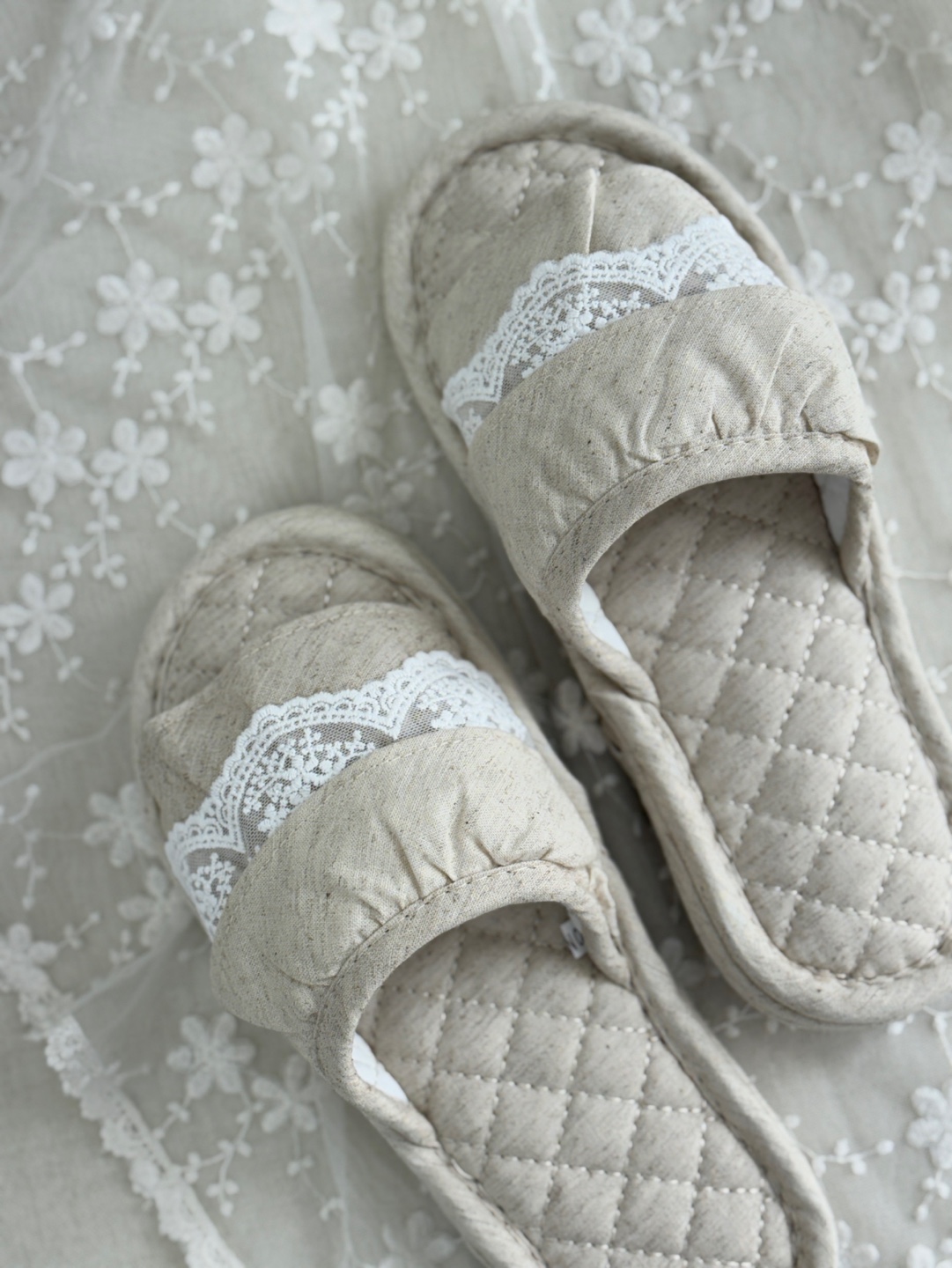 마리 레이스 린넨 실내 슬리퍼