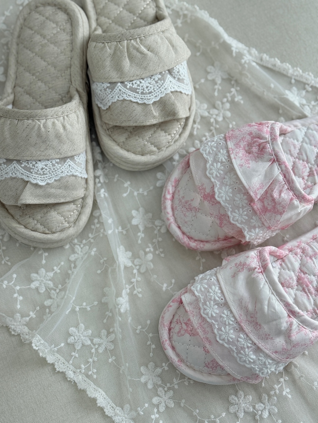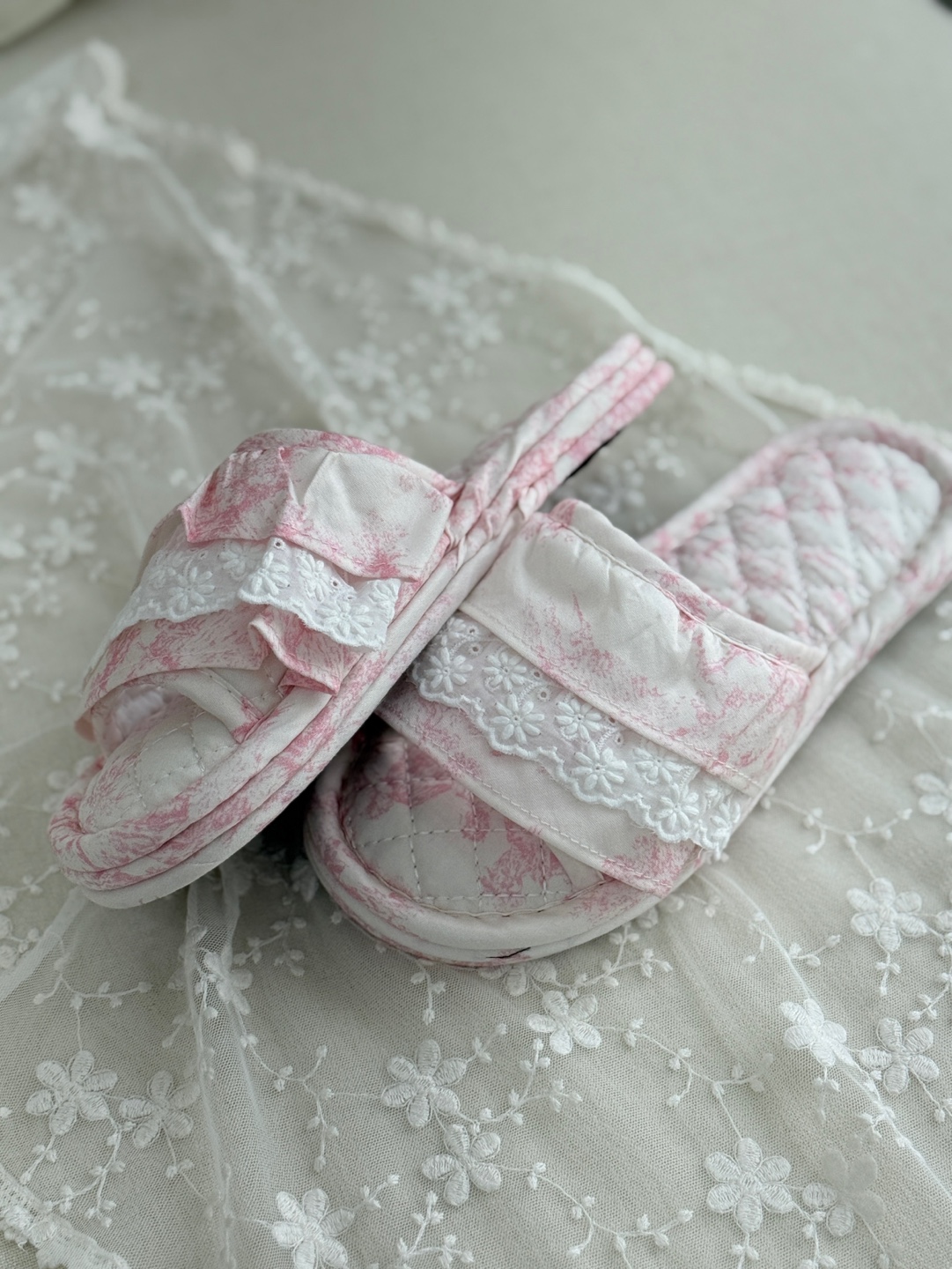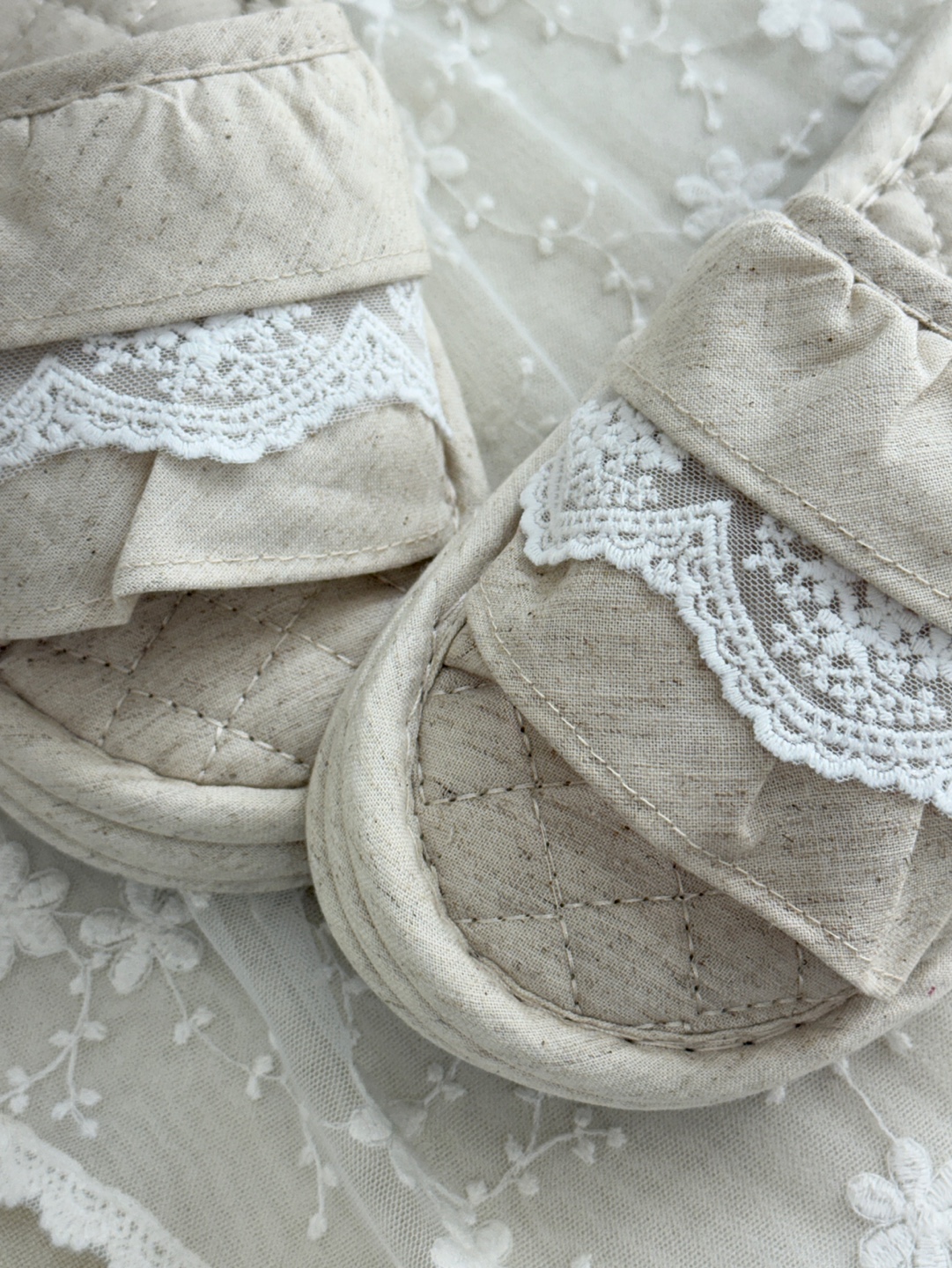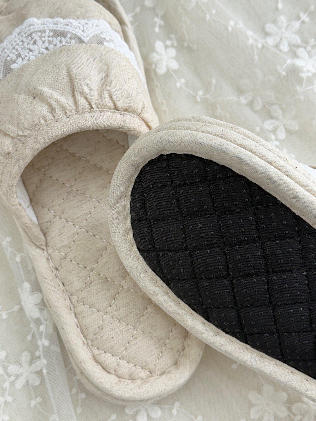 마리 레이스 린넨 실내 슬리퍼