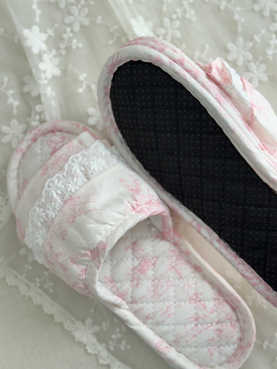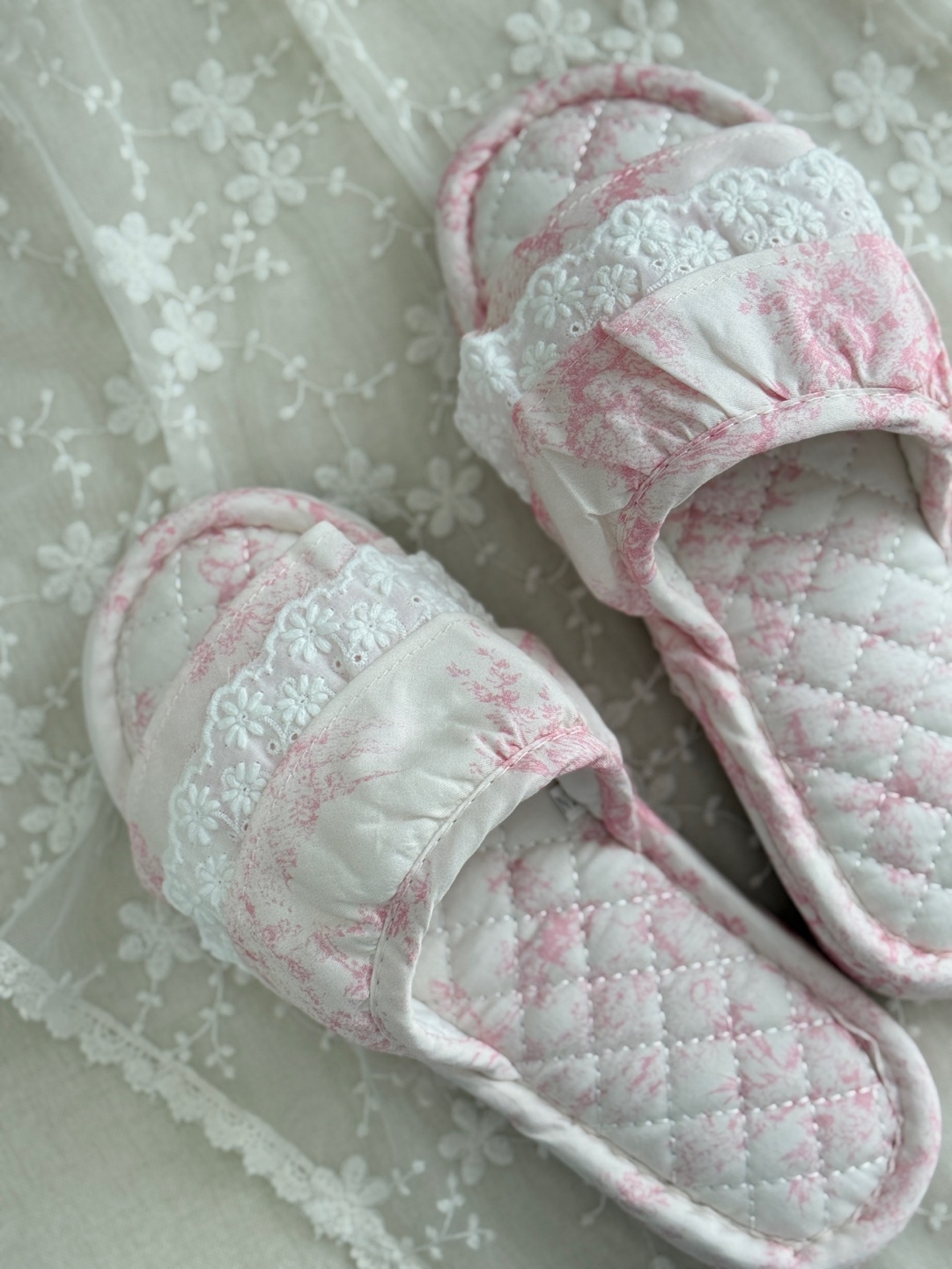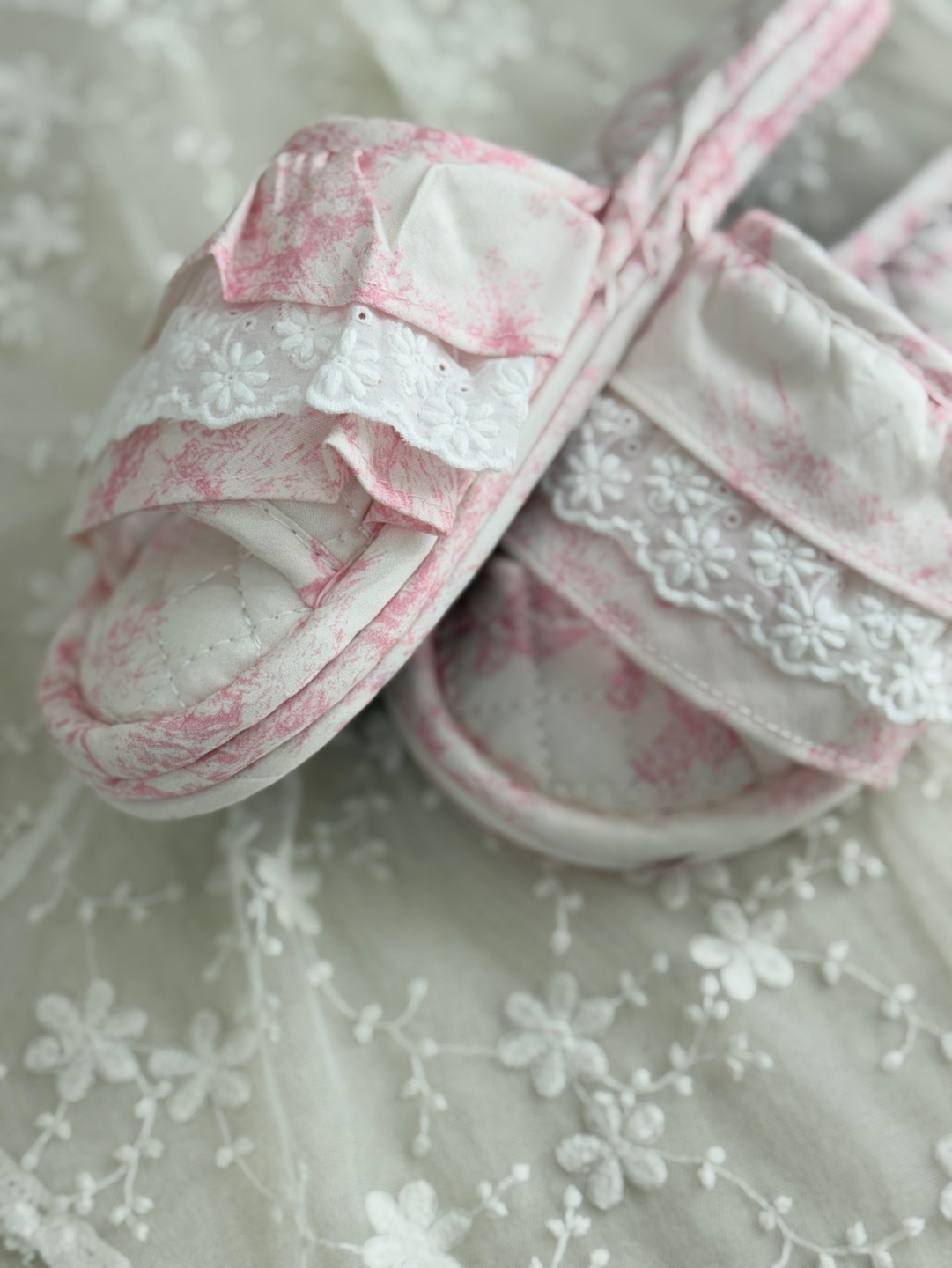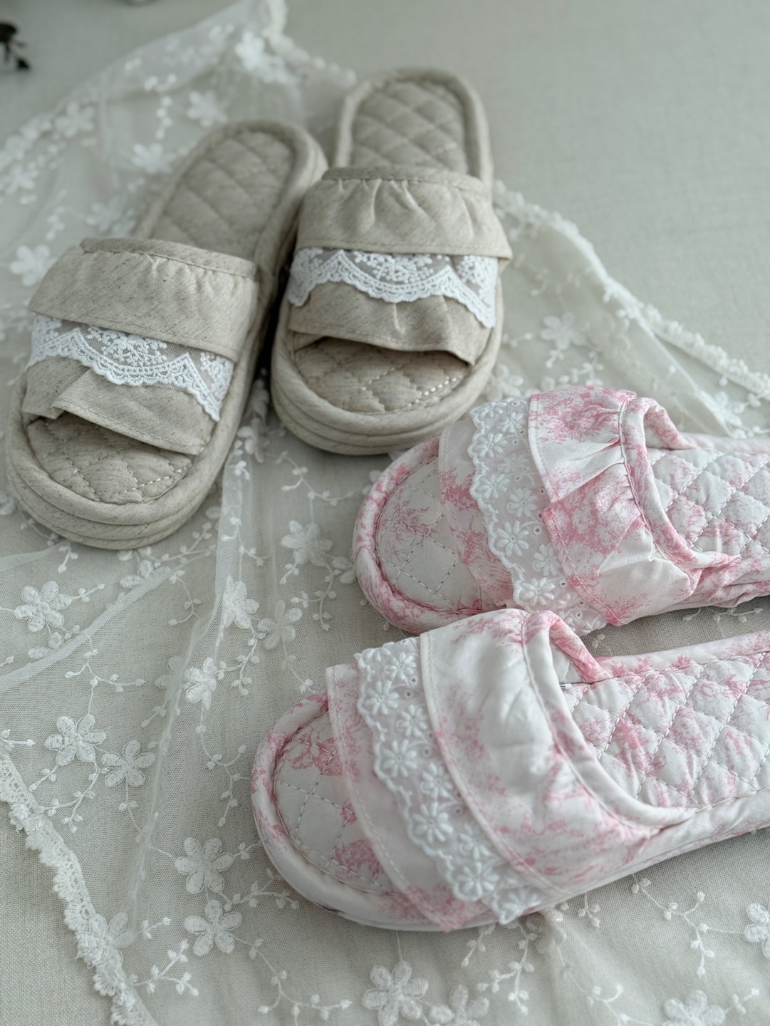 마리 레이스 린넨 실내 슬리퍼