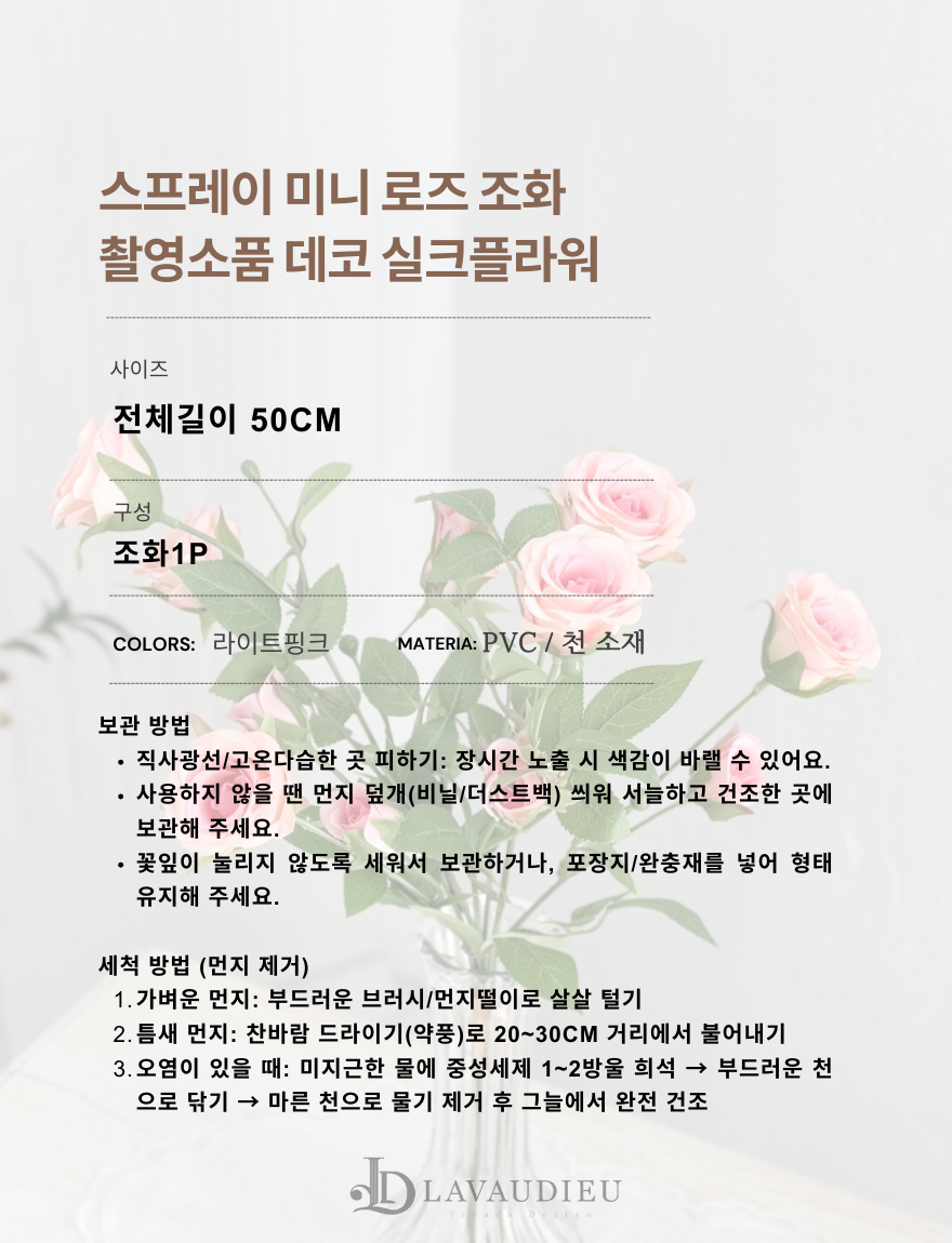 | 품명 | 스프레이 미니 로즈 조화 촬영소품 데코 실크플라워 |